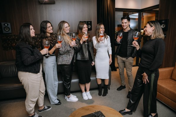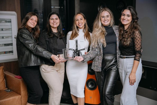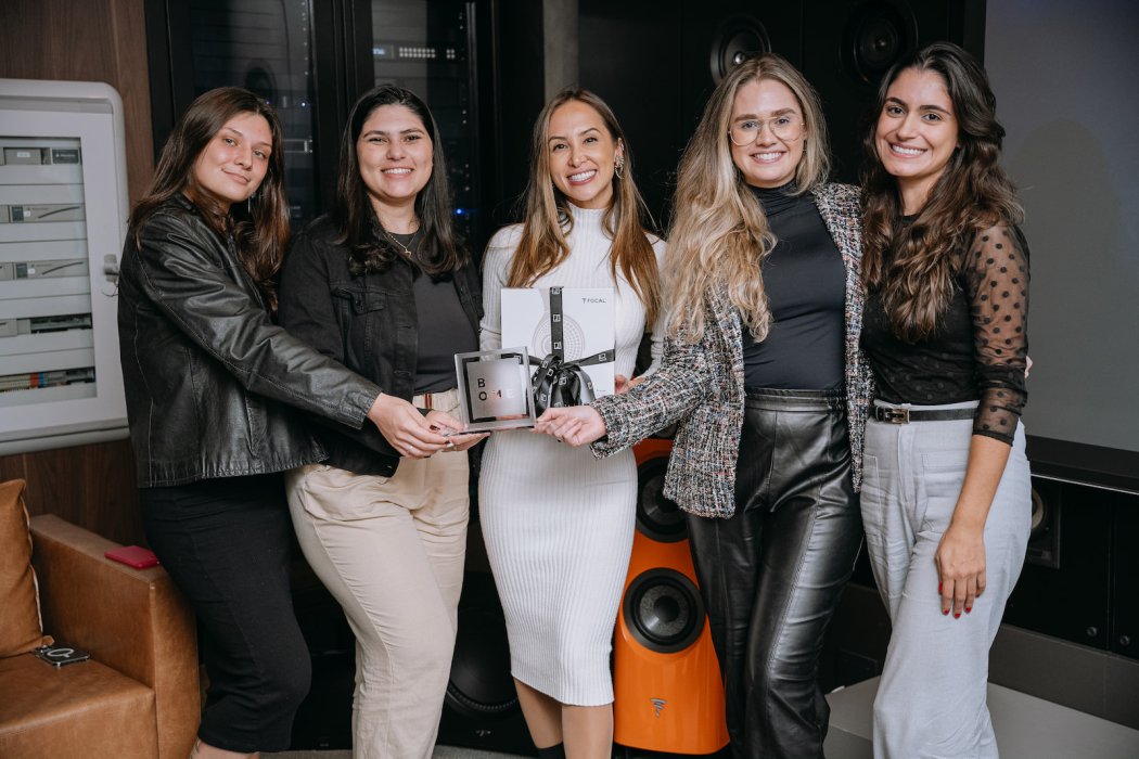 Em um agradável coffe break, entregamos à arquiteta o HeadPhone Bathys Focal, prêmio da campanha, e aproveitamos a oportunidade para apresentar o showroom para a equipe do escritório.