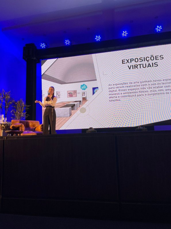 Manu Berger, especialista em mercado de luxo, apresentou uma palestra sobre o Meta Verso associado à arquitetura, com tendências, previsões e oportunidades.